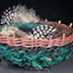 The nests are very special to me, perhaps because so much of nature goes into them: grasses, fibers, and twigs from streams and beaches as well as lily, iris, and crocosmia leaves from the garden. I fill them with soft wool fiber and add little found treasures. Each nest is a small quiet unique expression.