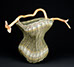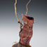 She is the third in a series of women. She embodies the energy of change. Weaving her constantly changing shape was tricky. I chose to weave with 2 weavers in twining weave, as it can be a pliable weave. She is crowned with a twisted rhododendron handle.